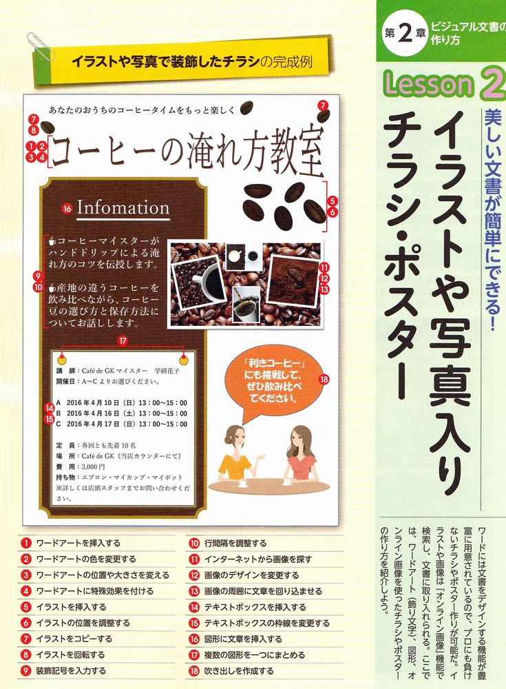 今回の勉強会では、第2章のLessin2で美しい文書が簡単にできる!『イラストや写真入りチラシ・ポスター』を勉強します。