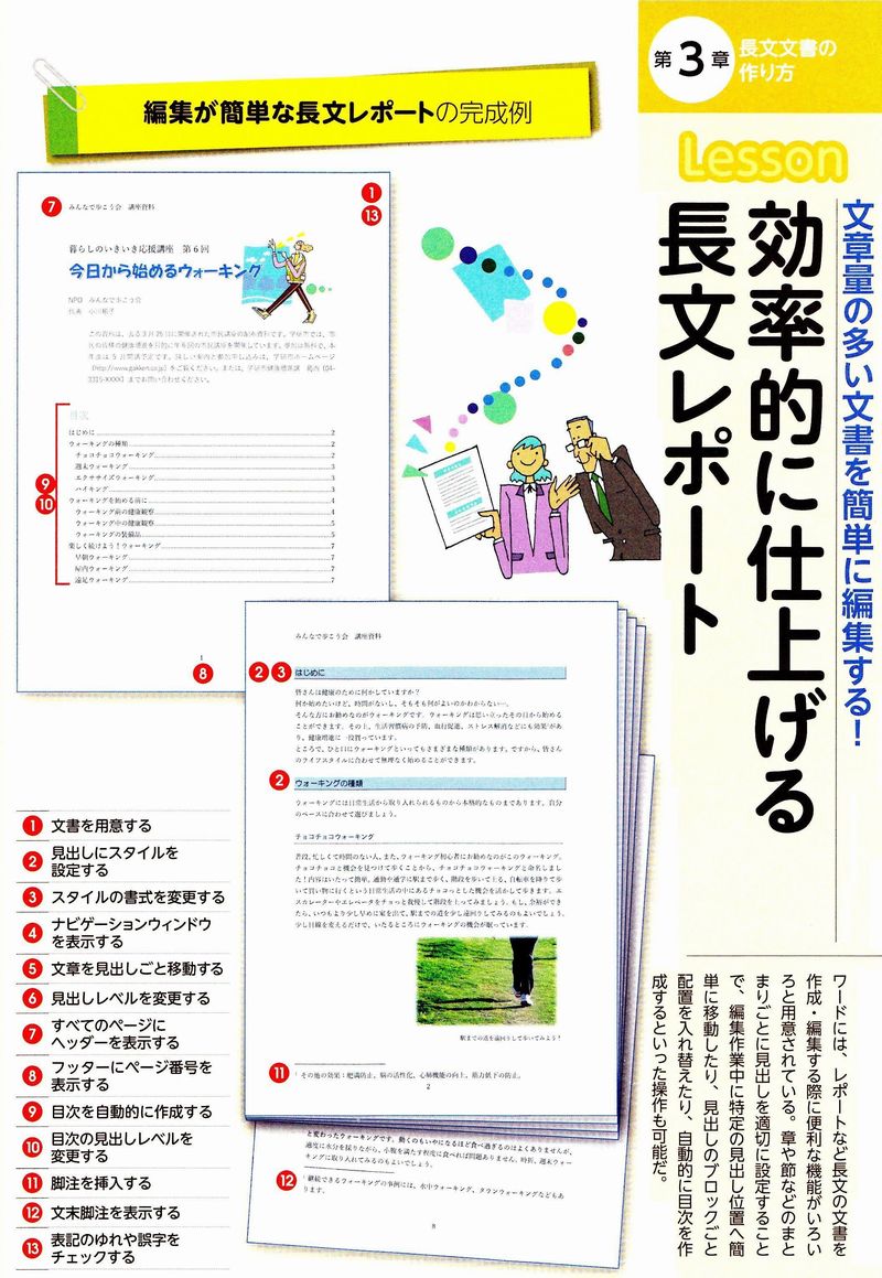 下記が完成品で原稿から❶から⓭の操作を実行すると完成します。今回は少し時間が掛かりそうですが、勉強内容を確認・予習しておいて下さい。練習用の原稿はここからダウンロードでき、完成品はここからダウンロードできます。